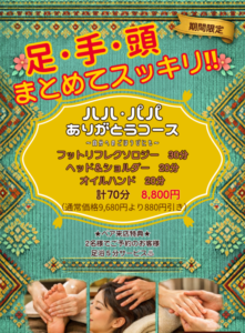 足・手・頭まとめてスッキリ!!【ハハ・パパコース】「自分へのご褒美」にも 「ありがとう」のギフトにもおすすめです✨