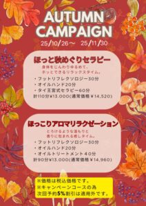 心と体をやさしく整える、秋限定の癒しコースが登場♪