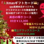 2025年11月12日 / 最終更新日時 : 2025年11月12日 bhspa 🌟🎀🎄SAP高槻本店11/18~12/25迄・【2025Xmasフェア開催】🎅🎄🎀 🌟🎀【Xmasキャンペーンコース】🎄🎅 いつもバーン・ハナSPA高槻本店をご利用いただきありがとうございます(*^^*)今年も心温まる💖Xmasキャンペーン💖を開催いたします🎄✨ 1年頑張ったご自身へのご褒美に…大切な方 […]