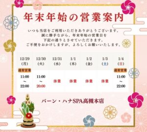 年末年始は大変混み合いますので、お早めのご予約がおすすめです♪
