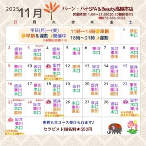 🍁11月のお知らせ🍁SPA高槻本店👑