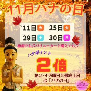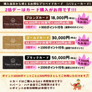 施術でも、バリューカードのご購入でもポイントが2倍貯まるハナの日に是非ご来店ください♬