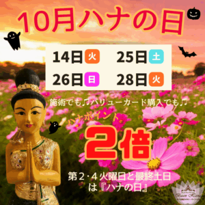 施術でも、バリューカードのご購入でもポイントが2倍貯まるハナの日に是非ご来店ください♬